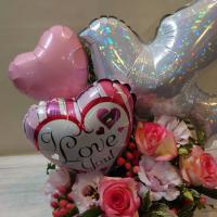 バルーンをアレンジしたフラワーギフト