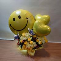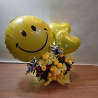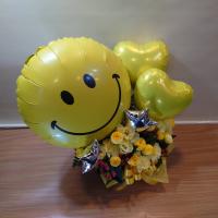 キュートな「ニコちゃん」バルーンアレンジメント「Smile/スマイル」(イエロー)
